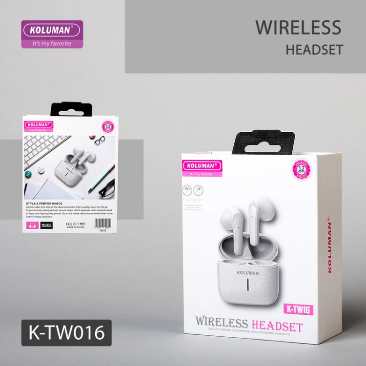 ایرپاد KOLUMAN TW16 یک هندزفری بیسیم خوشساخت و اقتصادی است که برای استفاده روزمره، مکالمه و پخش موسیقی طراحی شده است.